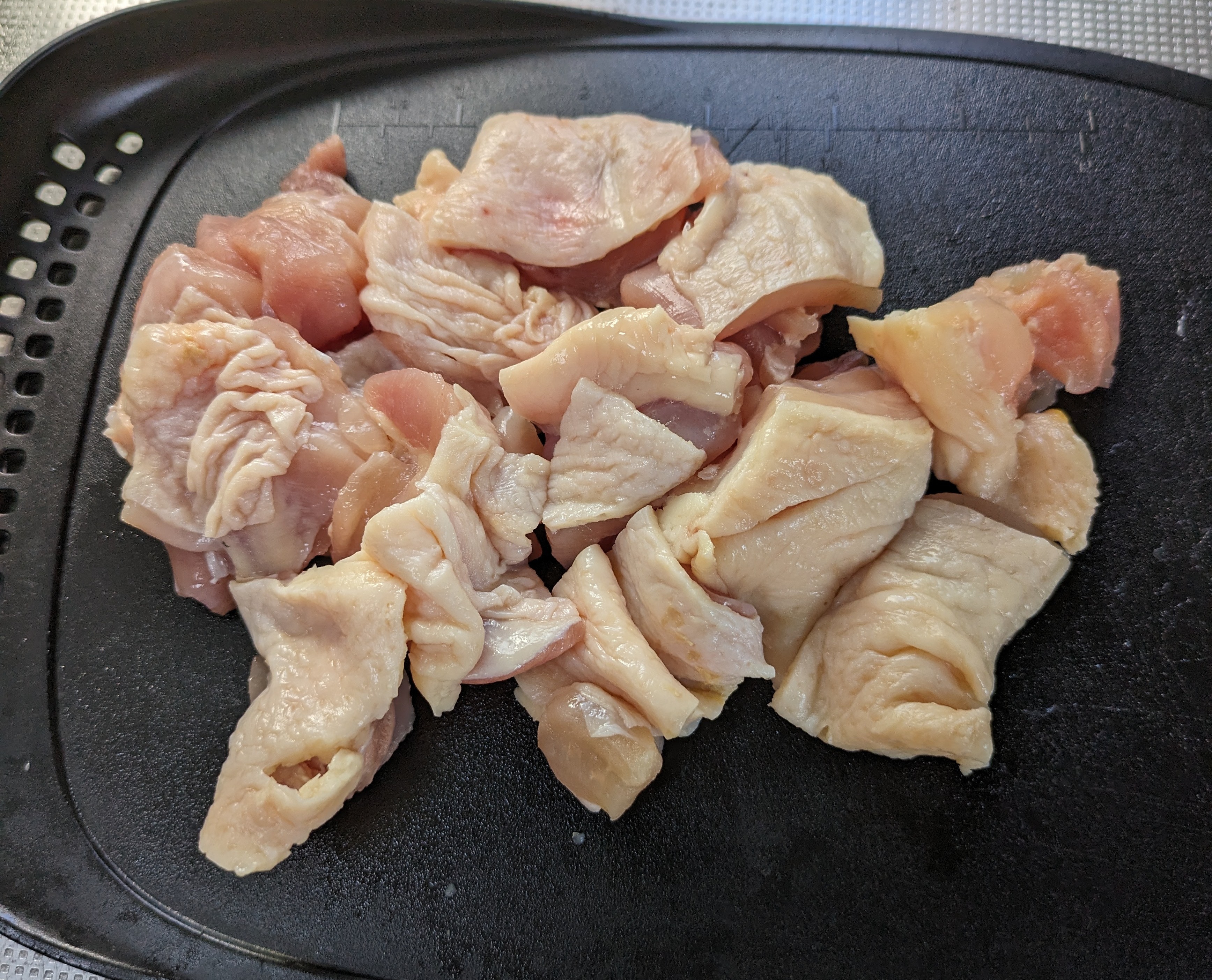 1、鶏もも肉を1口大に切っておきます(前回の写真と一緒です、すみません💦)